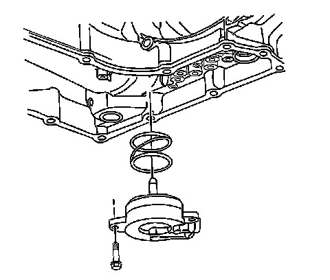 2. Remove the oil pan and filter. Refer to Automatic Transmission Fluid Filter and Seal Replacement (4T45-E Automatic Transaxle).