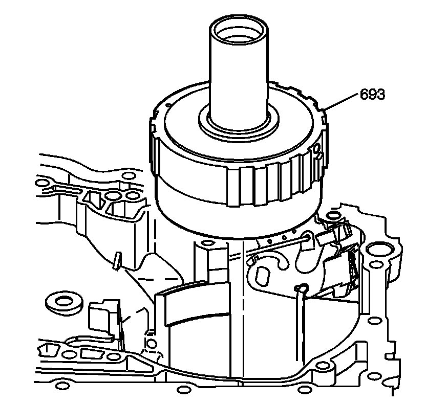 3. Lift the differential carrier internal gear assembly (693) out of the case by depressing the park pawl assembly in order to clear the case.