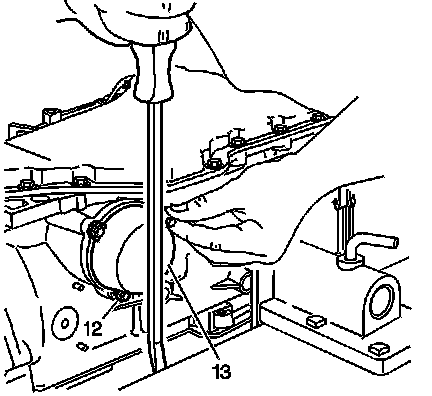 2. Use a long screwdriver in order to compress the forward band servo assembly cover (13) by prying against the work bench.