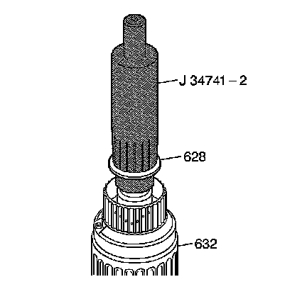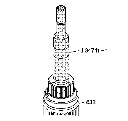 1. Install J 34741-1 - seal installer into the input clutch housing (632). Adjust J 34741-1 - seal installer so that the bottom of the seal installer aligns with the lowest seal ring groove.
