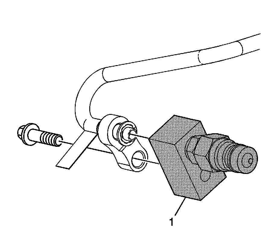 1. Connect the J 45096-50 - cooler flush adapter (1) to the vehicle transmission oil cooler supply and return lines at the transmission.
