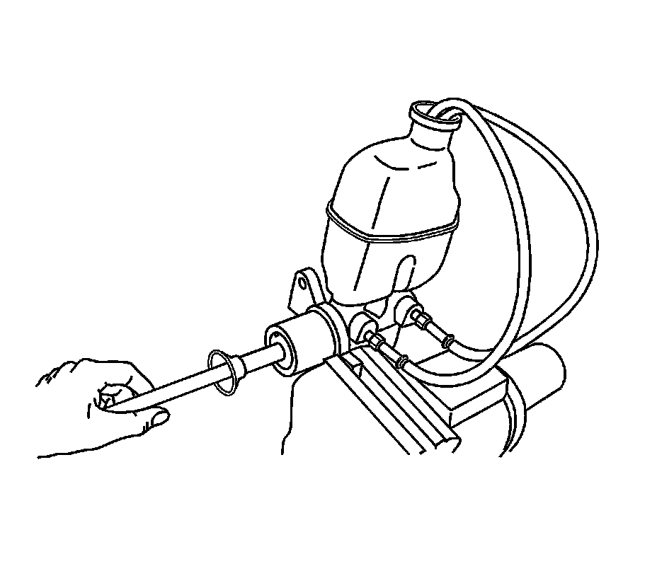 7. Using a smooth, round-ended tool, depress and release the primary piston as far as it will travel, a depth of about 25 mm (1 in), several times. Observe the flow of fluid coming from the ports.