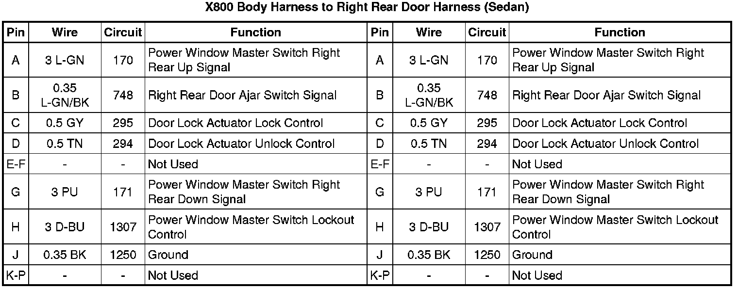 X800 Body Harness to Right Rear Door Harness (Sedan)