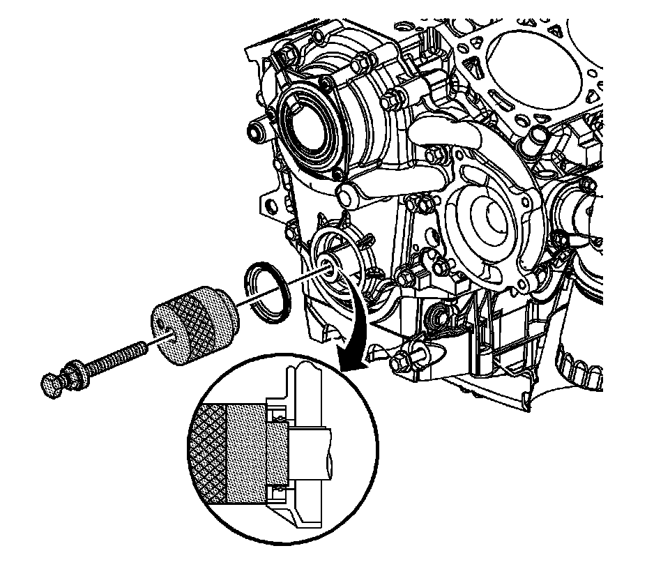1. Place the crankshaft front oil seal on the EN-48869 with lip facing inward, aligning crankshaft keyway to the groove in the installer.