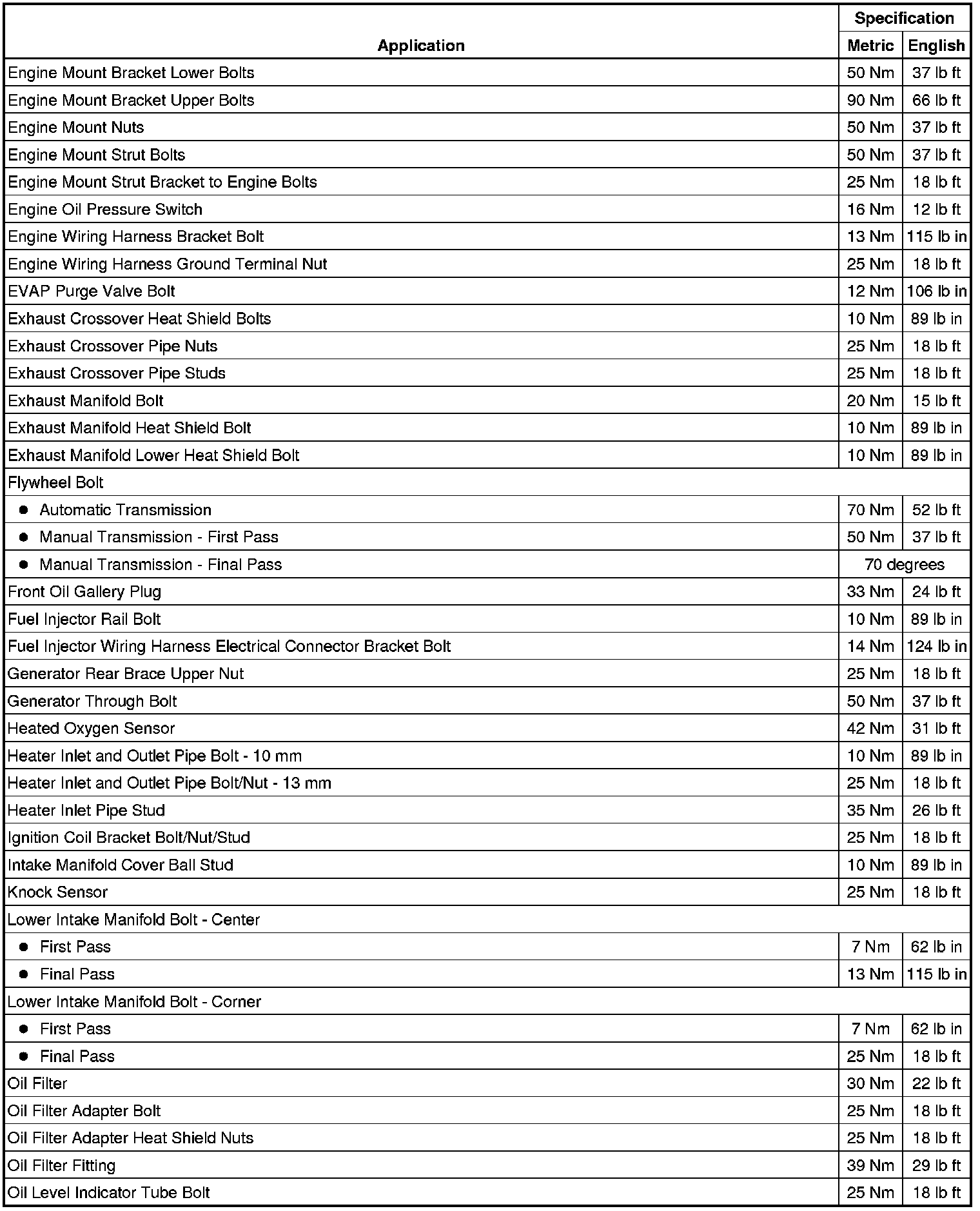 Fastener Tightening Specifications