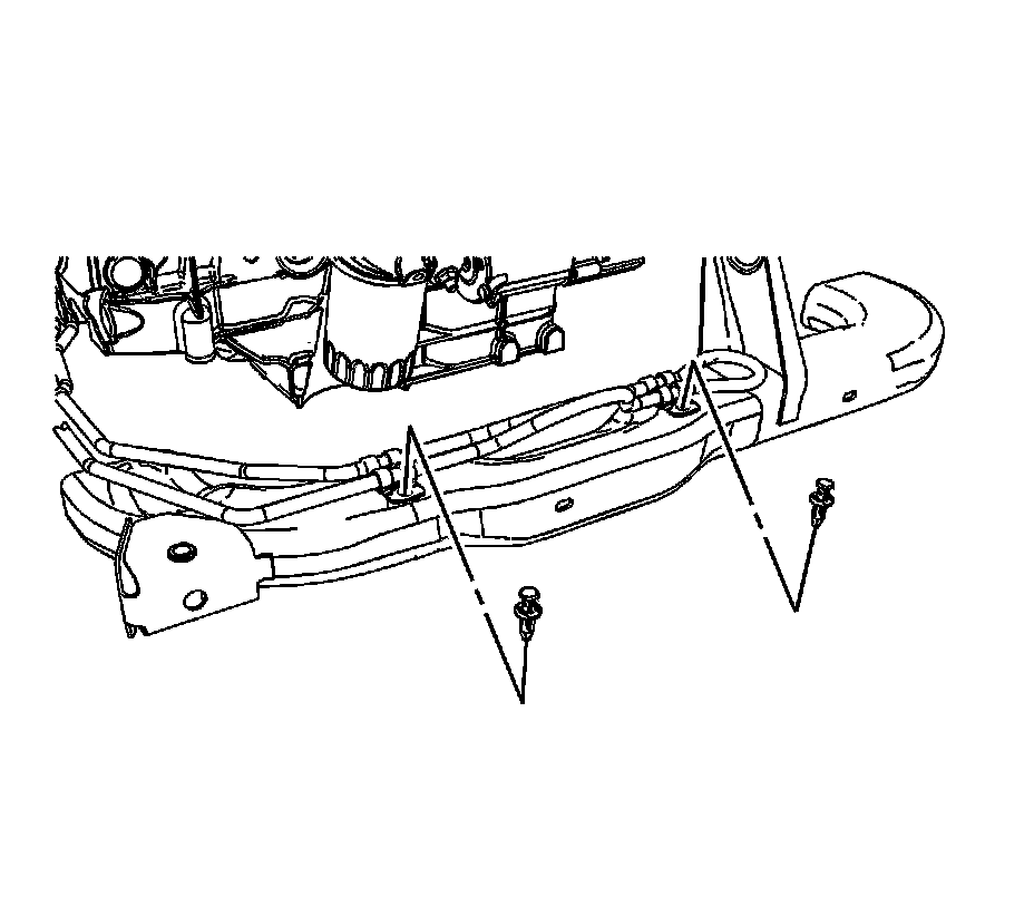 6. Remove the 2 power steering gear inlet pipe routing pin-style retainers from the front of the frame.