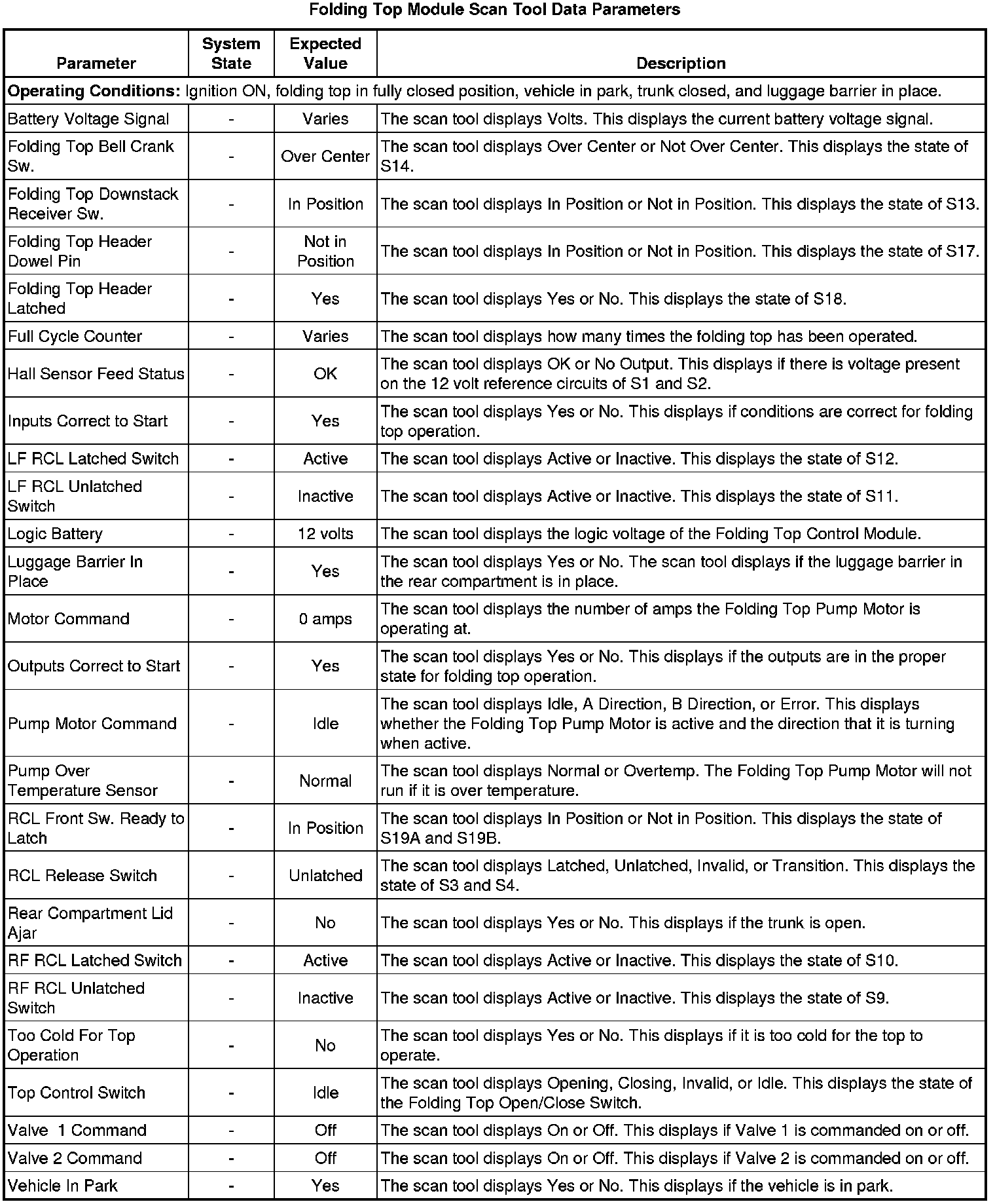 Folding Top Control Module Scan Tool Information