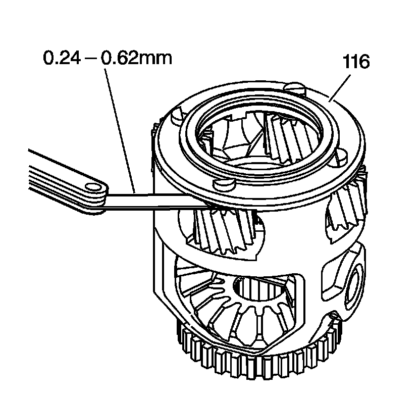 2. If the clearance is out of specification, replace the differential assembly (116).
