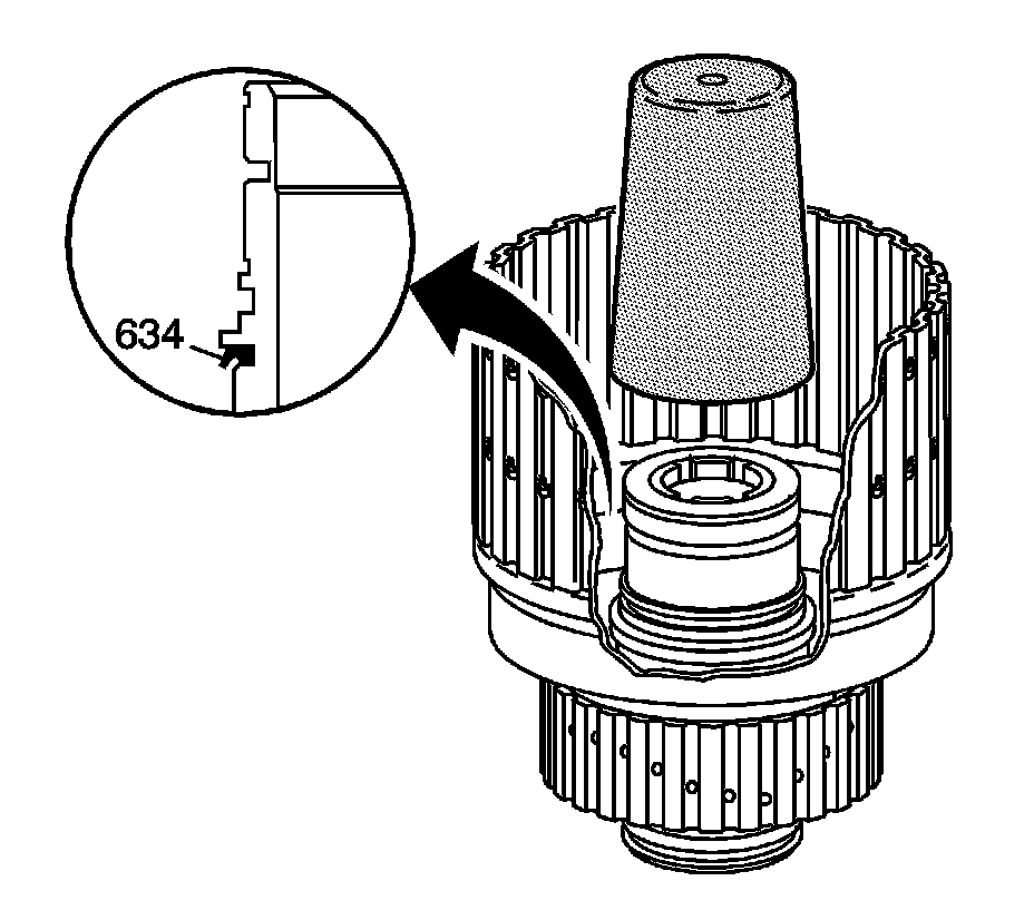9. Install the input clutch spring and retainer assembly (637) into the input shaft and housing assembly.