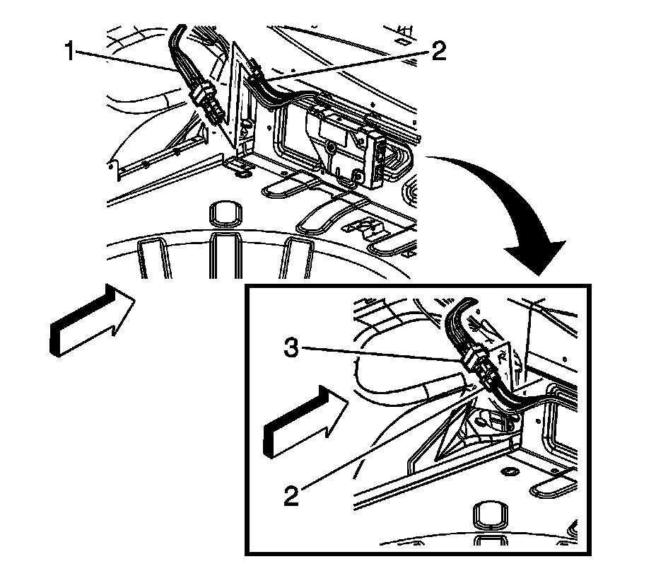 6. Disconnect the electrical connectors from the rear window defogger location in the rear compartment.