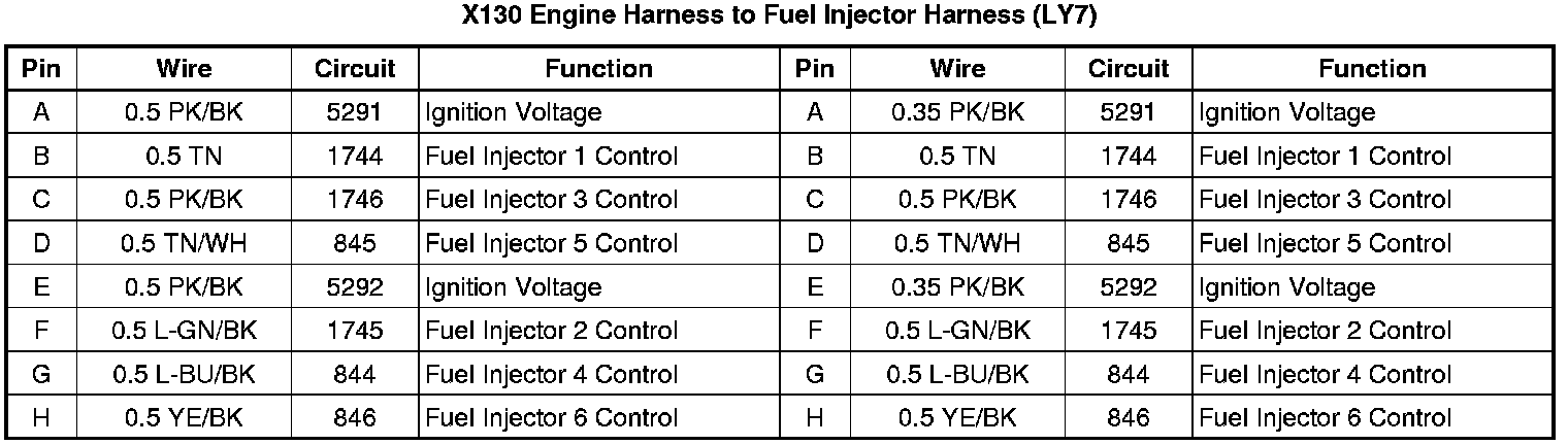 X130 Engine Harness to Fuel Injector Harness (LY7)