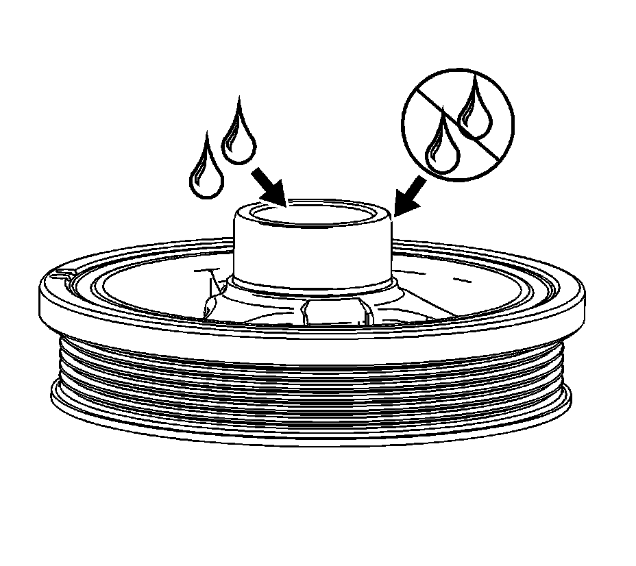 Note: Do not lubricate the crankshaft front oil seal or crankshaft balancer sealing surfaces. The crankshaft balancer is installed into a dry seal.