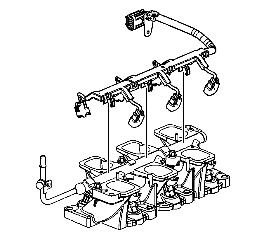 3. Remove the fuel injector wiring harness bracket bolt from the upper intake manifold.