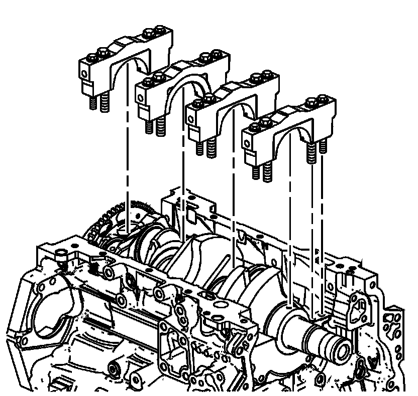 Note: The side main cap bolts originally have a sealant on the flange of the bolt head. NEW bolts must be used. If NEW bolts are not used, oil can leak from the crankcase past the bolts.