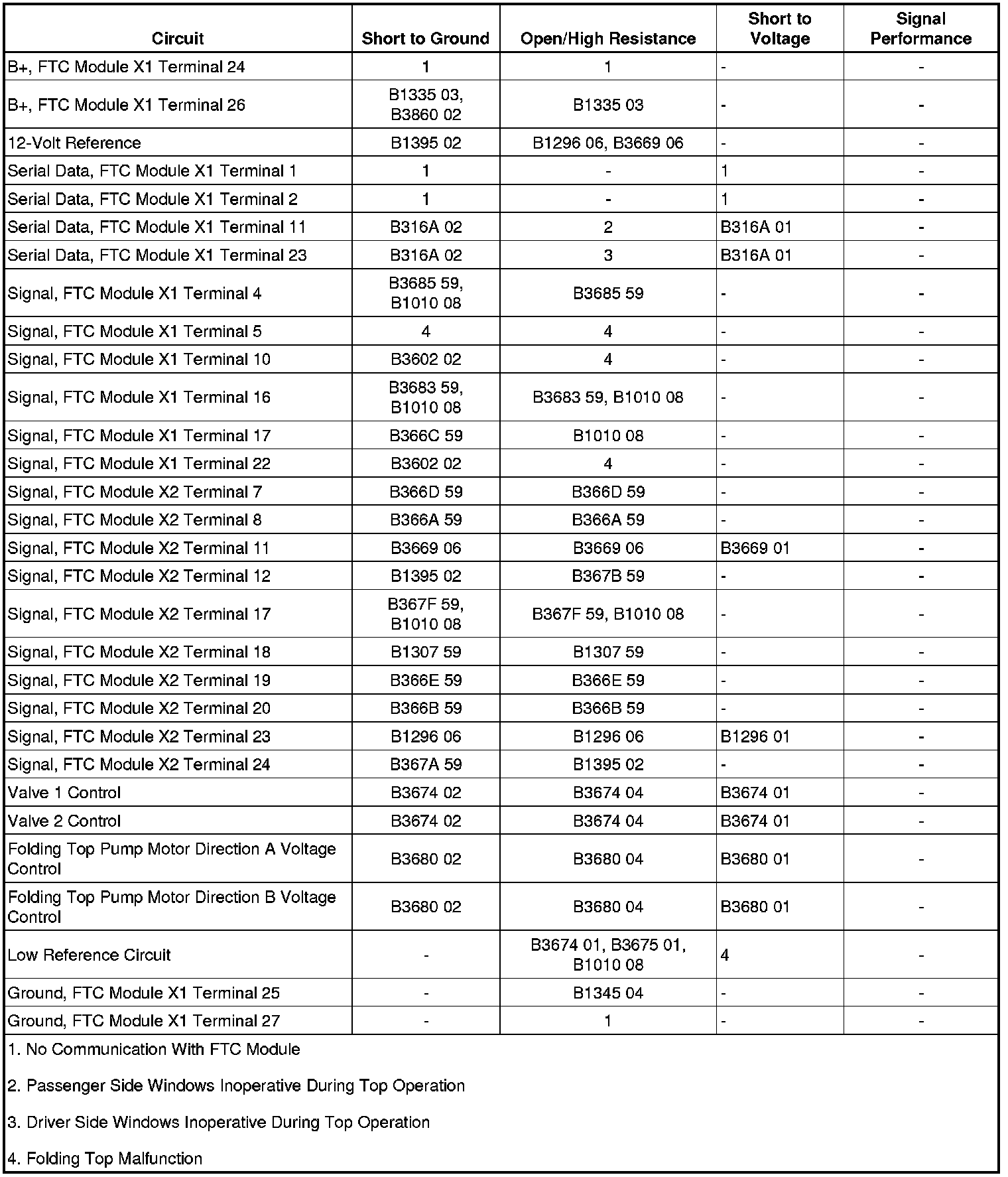 The folding top control (FTC) module receives ground at X1, terminal 25. The FTC Module monitors this circuit for proper operation.