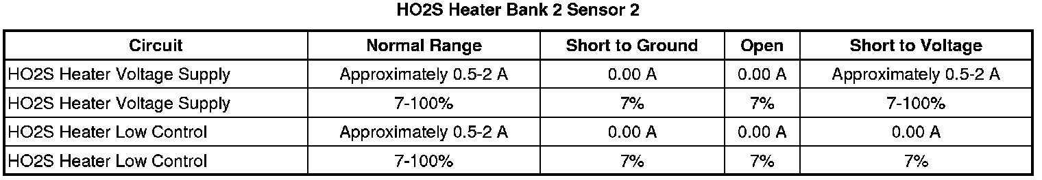 * The HO2S heater current is less than 0.31 amp or more than 1.5 amps for more than 8 seconds, twice in a 1-minute period.