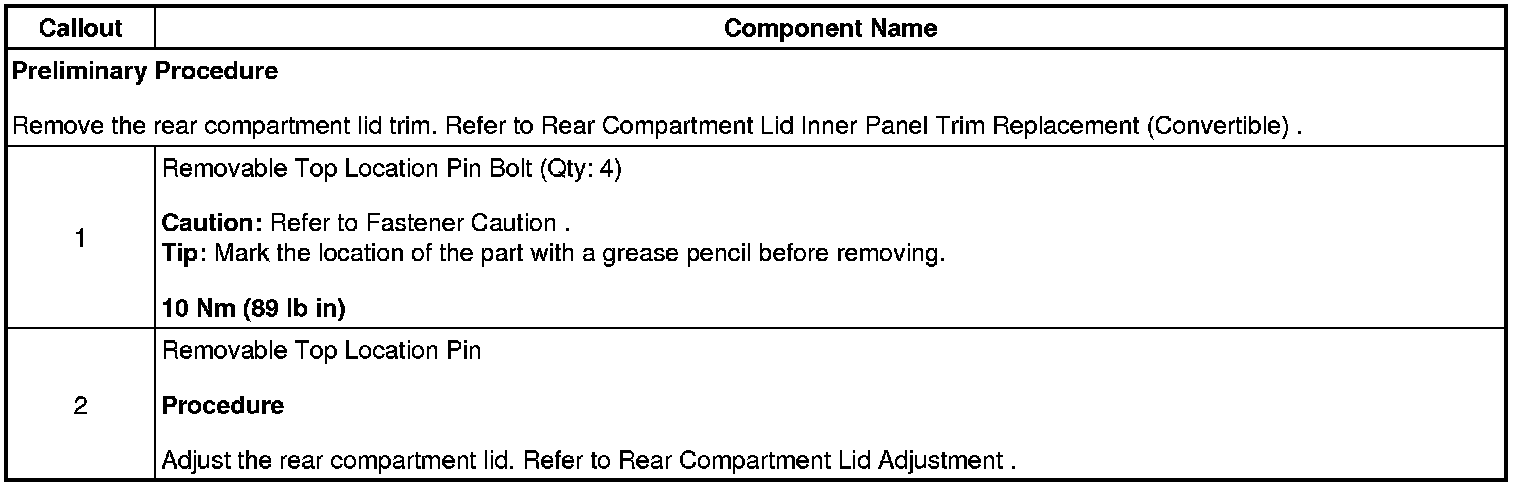 Removable Top Locating Pin Replacement - Rear Compartment Lid