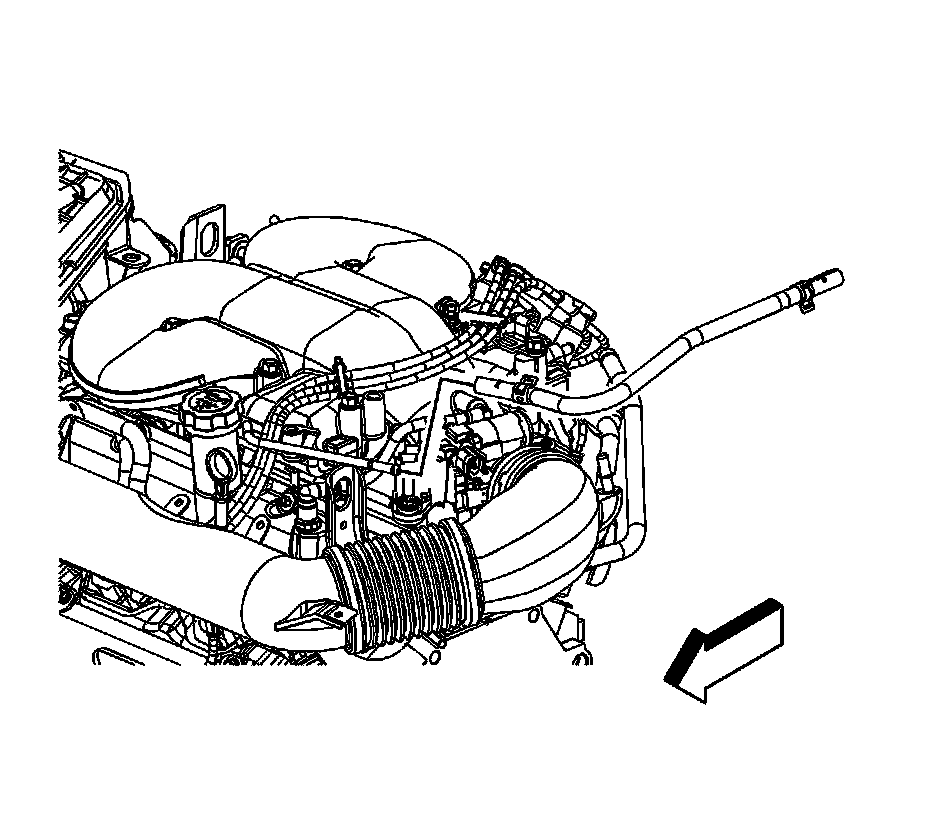 7. Remove the positive crankcase ventilation (PCV) fresh air tube. Refer to Plastic Collar Quick Connect Fitting Service (Plastic Collar Quick Connect Fitting Service).