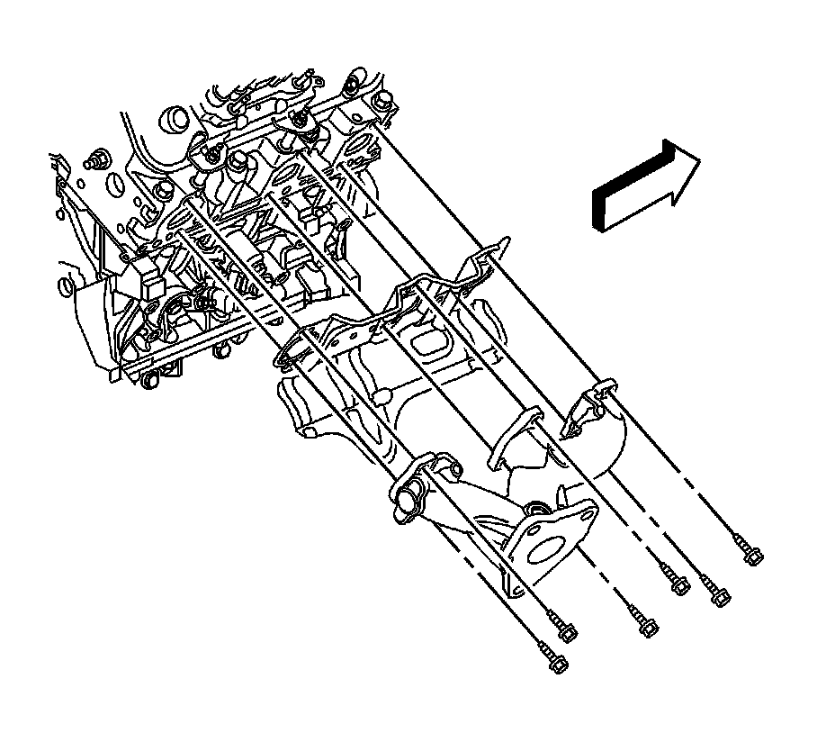 9. Remove the right catalytic converter. Refer to Catalytic Converter Replacement - Right Side (LY7) (Service and Repair)Catalytic Converter Replacement - Right Side (LZ4) (Service and Repair)Catalytic Converter Replacement - Right Side (LZ9 w/RPO M15) (Service and Repair)Catalytic Converter Replacement - Right Side (LZ9 w/RPO MT2) (Service and Repair).