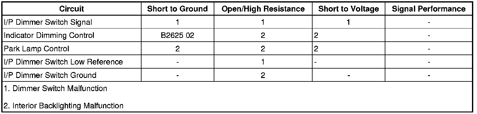 5. If all circuits test normal, test or replace the I/P dimmer switch.