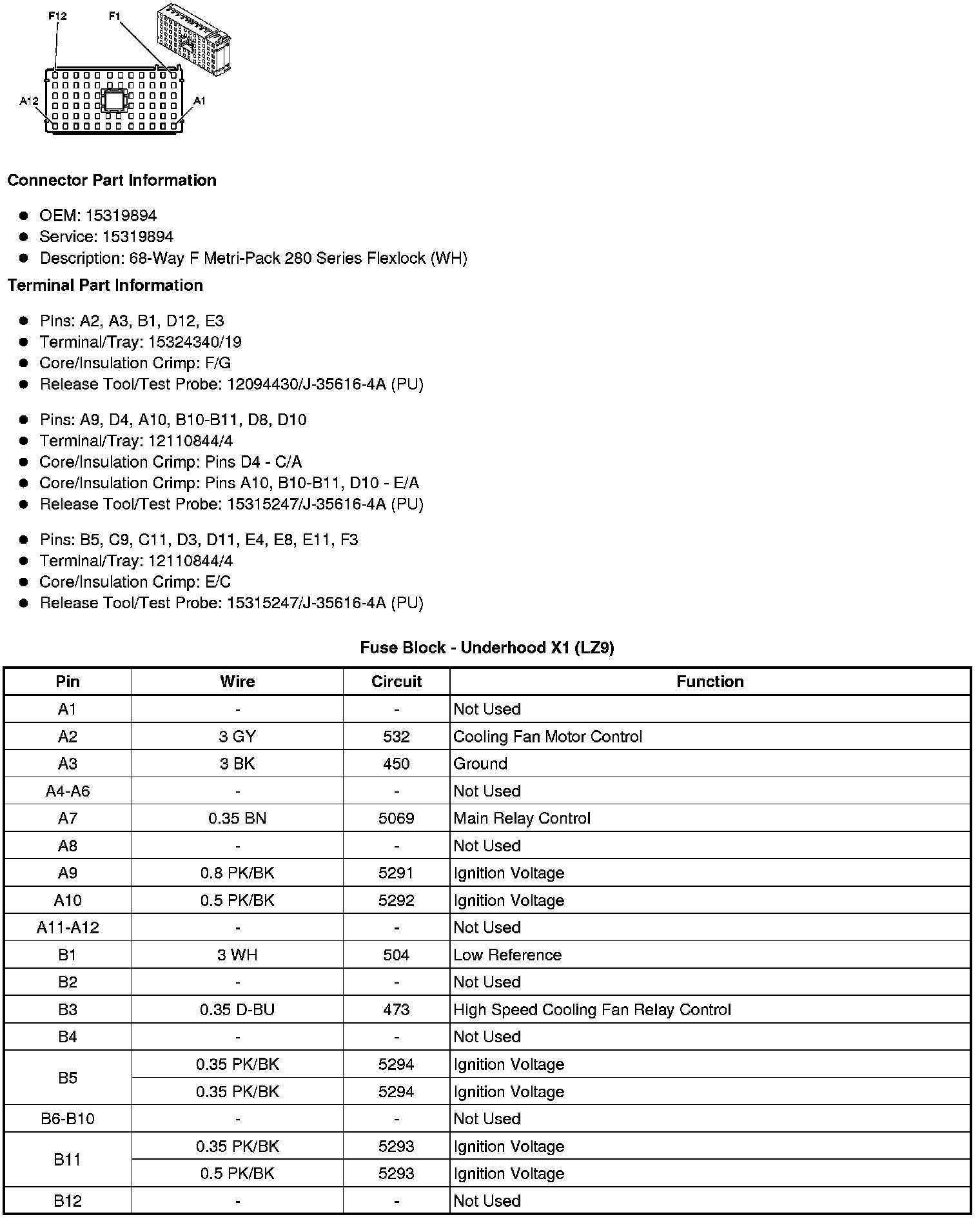 Fuse Block - Underhood Top View (LZ4/LZ9)