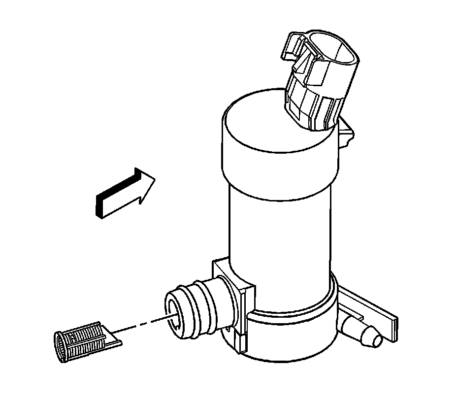 Important: The washer pump filter has only one proper orientation to the washer pump. The key slot on the filter must be positioned on the bottom as the filter is inserted into the washer pump.