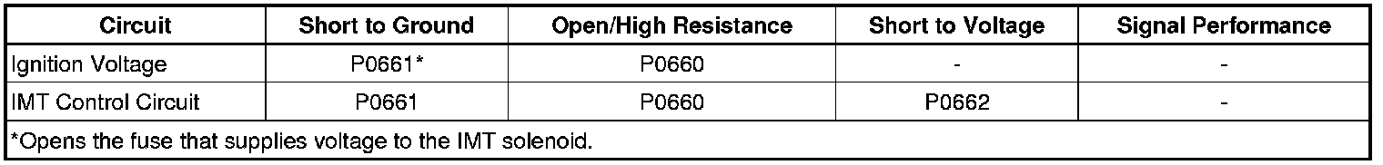 - Intake Manifold Tuning (IMT) Solenoid Control Circuit Low Voltage