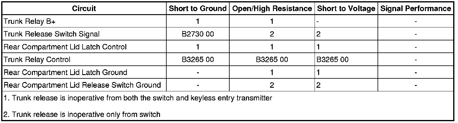 • If the rear compartment lid latch does not release, refer to Rear Compartment Lid Latch Malfunction.