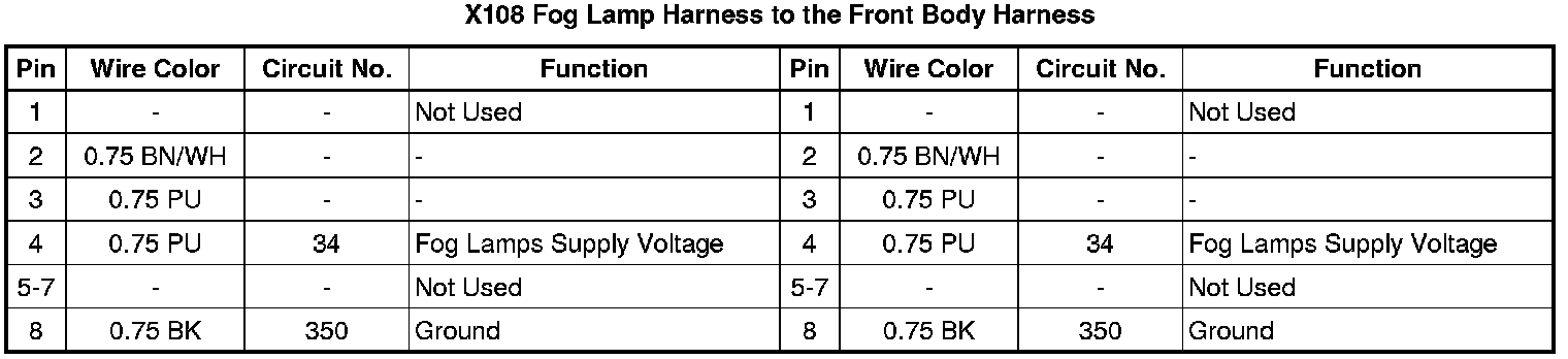 X108 Fog Lamp Harness to the Front Body Harness