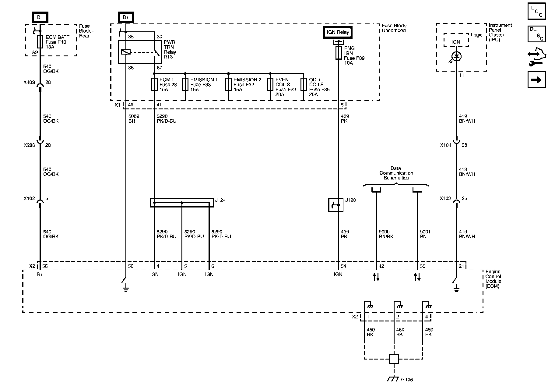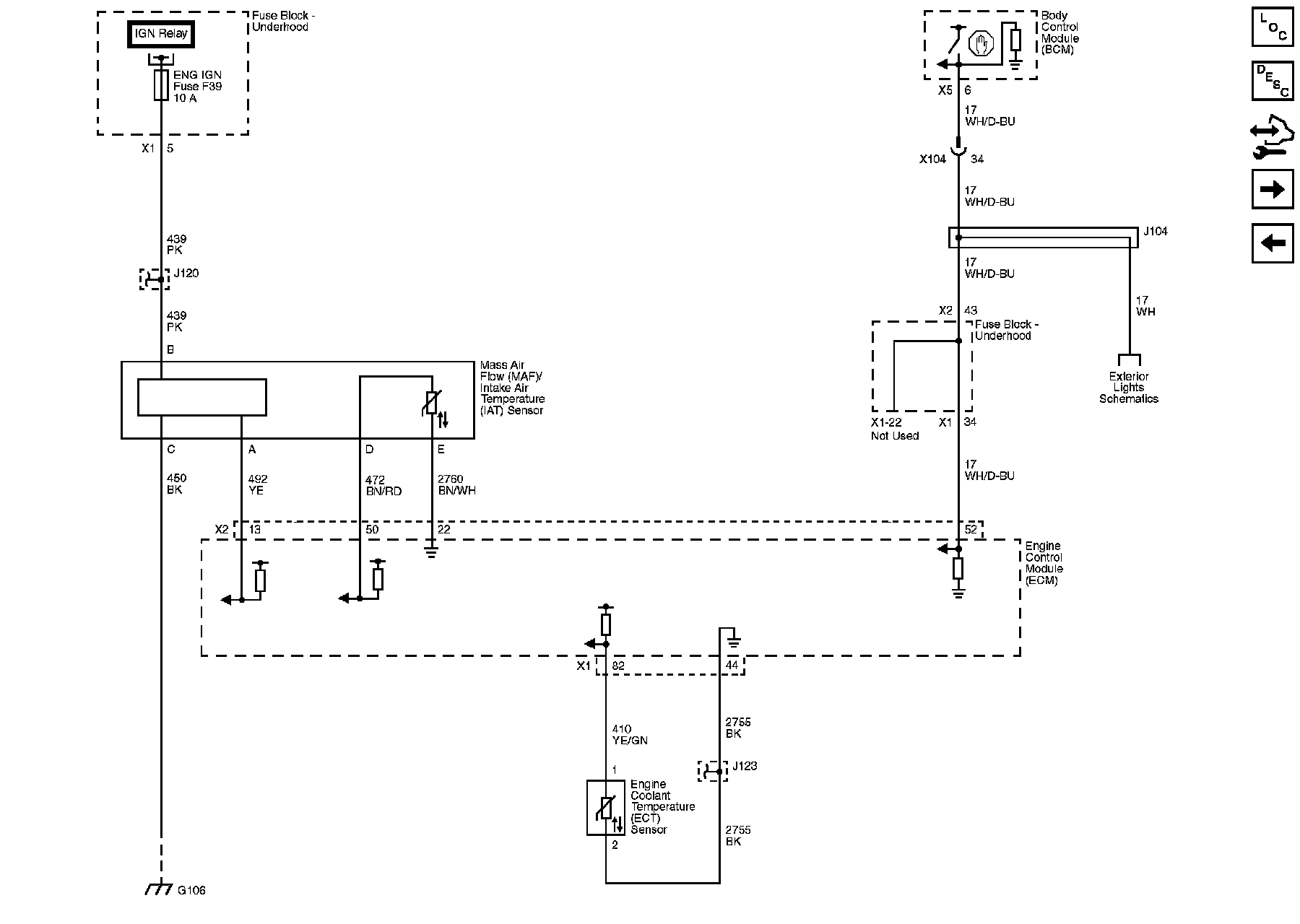 Locations: The locations for the Connectors, Grounds, Splices, and Grommets shown within these diagrams can be found via their numbers at Vehicle Locations. Locations