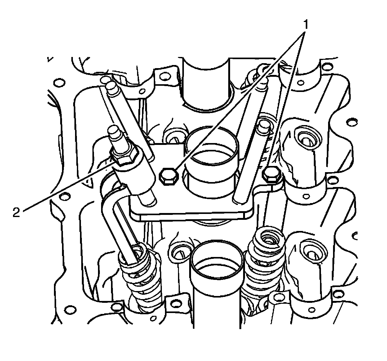 3. Remove the camshafts and rocker arms. Refer to Camshaft Replacement - Left Side (Camshaft Replacement - Left Side).