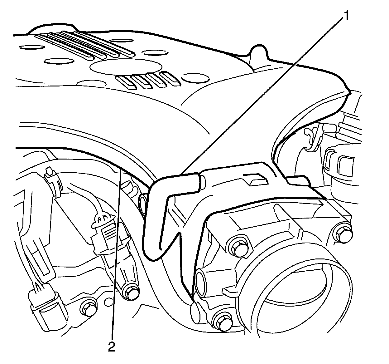 3. Remove the air intake duct. Refer to Air Cleaner Inlet Duct Replacement (Air Cleaner Inlet Duct Replacement).