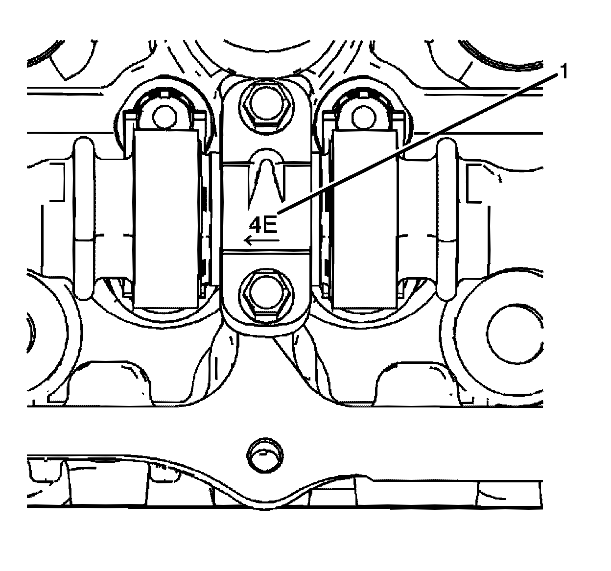 Important: EN 46105 (2) was installed to the camshafts (1) as part of the left bank cylinder head camshaft position actuator removal procedure.