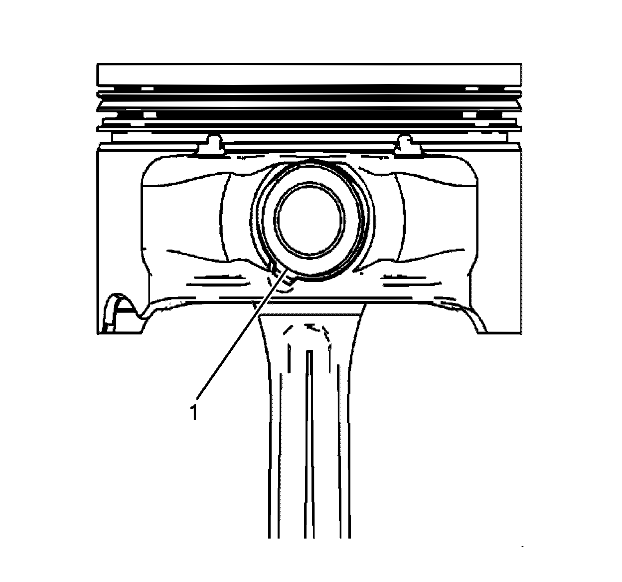 1. Correctly orient the oil control ring expander (1) as shown before installation. The ends of the oil control ring expander (1) must be facing toward the top of the piston.