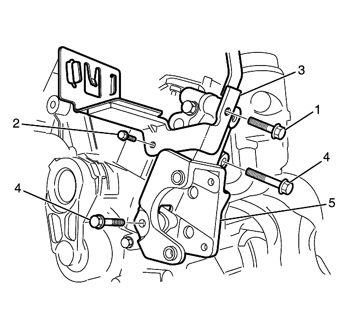 7. Remove the power steering pump bracket (5).