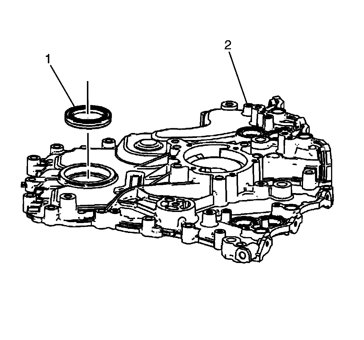 3. Remove the water pump seal (1) from the engine front cover (2).