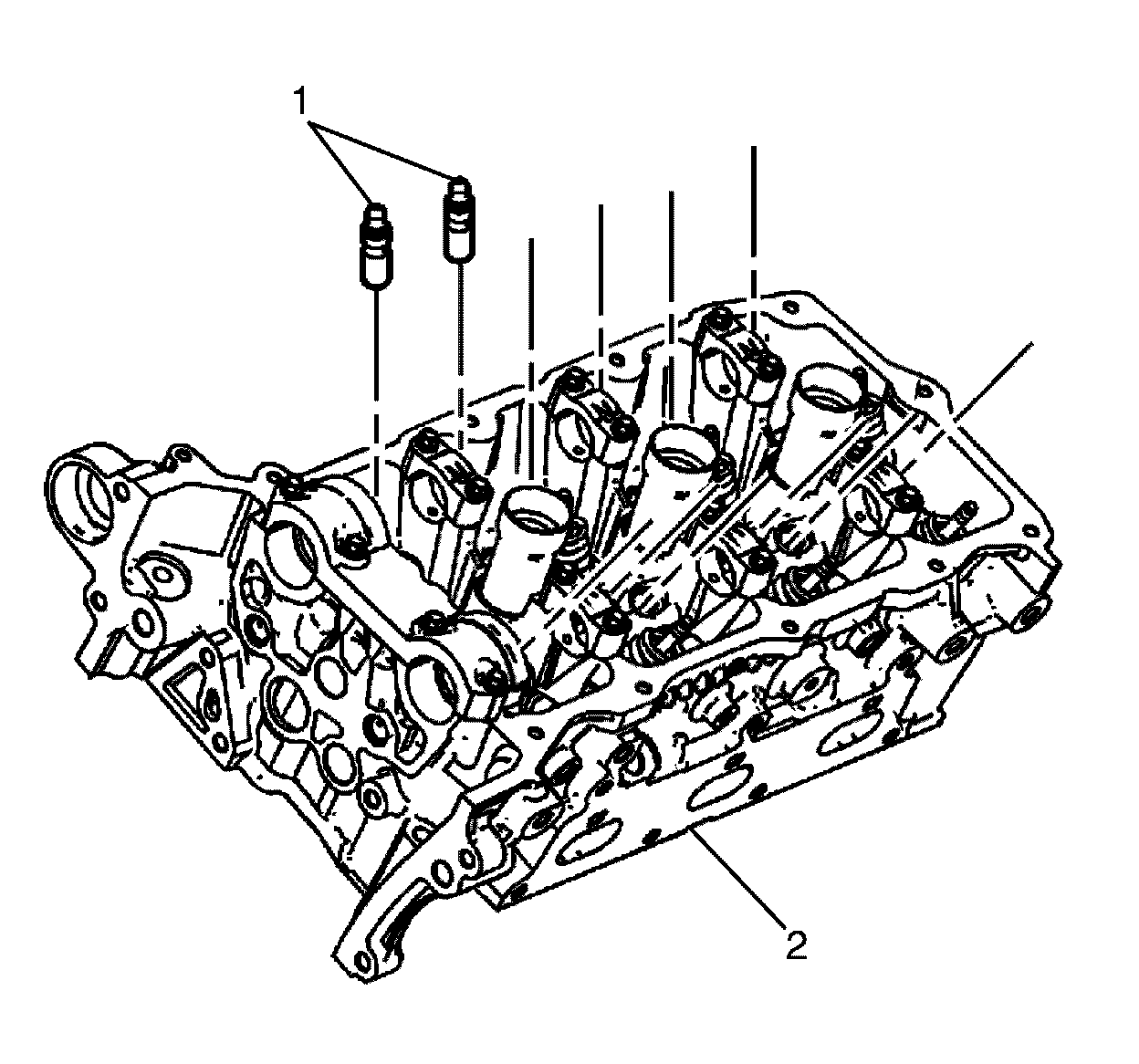 3. Install the SHLAs (1) in the cylinder head (2).