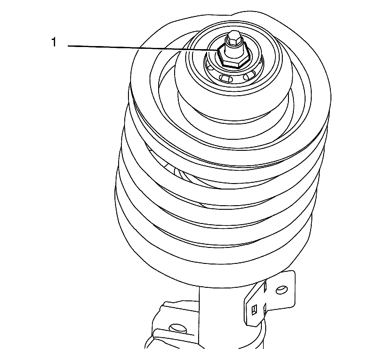 Note: The strut assembly retaining nut (1) must be checked for correct torque before installing the strut assembly into the vehicle. The strut assembly retaining nut torque must be 75 Nm (55 lb ft).