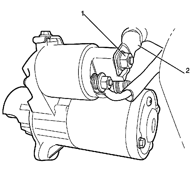 9. Remove the battery positive cable (2) from the starter motor.