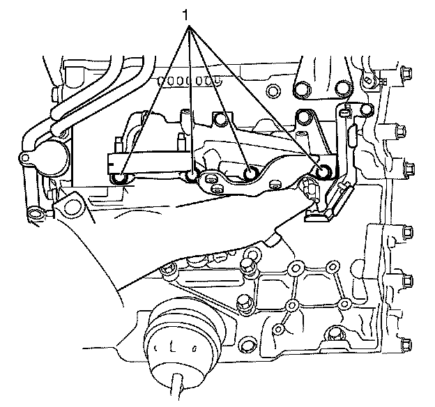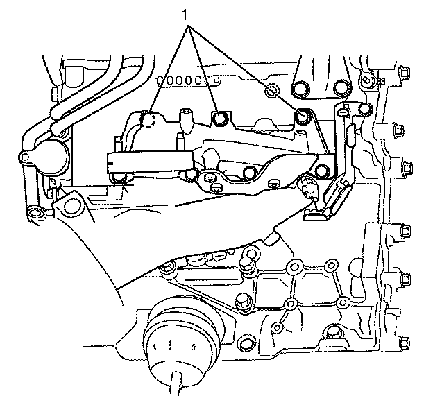 Note: Do not fully tighten the exhaust manifold to cylinder head retaining bolts (1) at this stage.