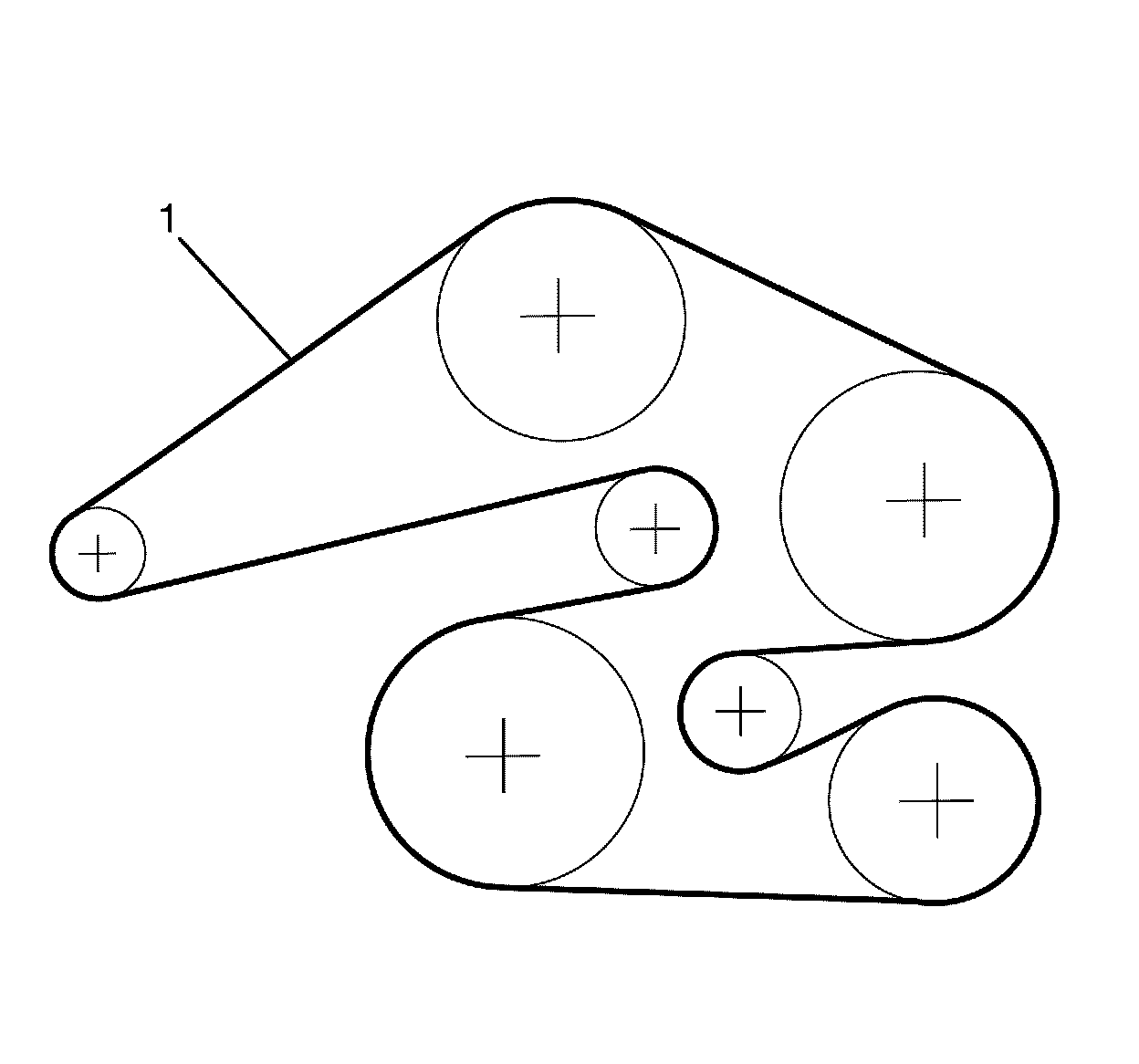 1. Install and correctly route the drive belt (1) around the following: