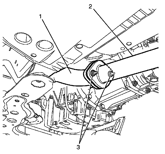 4. Install NEW exhaust crossover pipe assembly to left catalytic converter retaining nuts (3) and tighten to 40 Nm (30 lb ft).