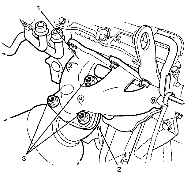 6. Remove the right catalytic converter to exhaust manifold retaining nuts (3).