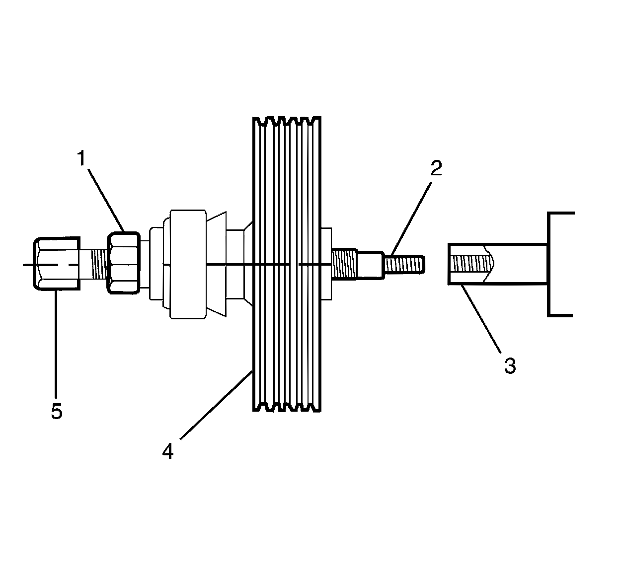Note: Observe the orientation and the depth of the pulley (3) with reference to the original position, this will minimize the potential of incorrect pulley installation.