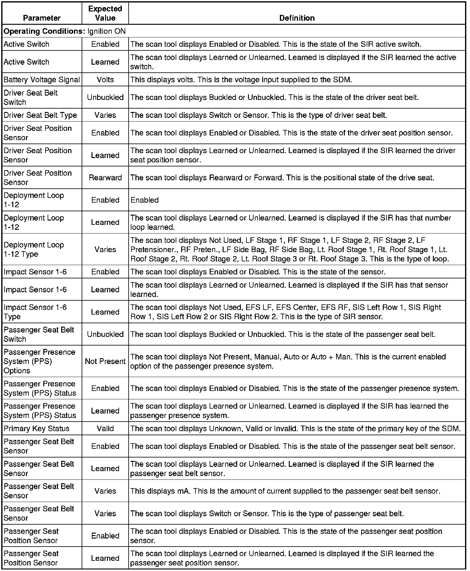 Sensing and Diagnostic Module Scan Tool Data Parameters