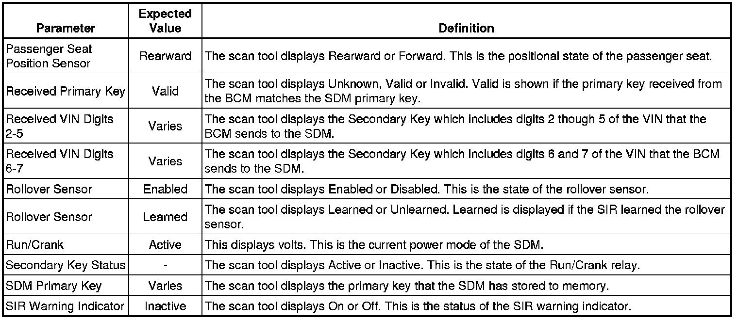 Inflatable Restraint Sensing and Diagnostic Module Scan Tool Information