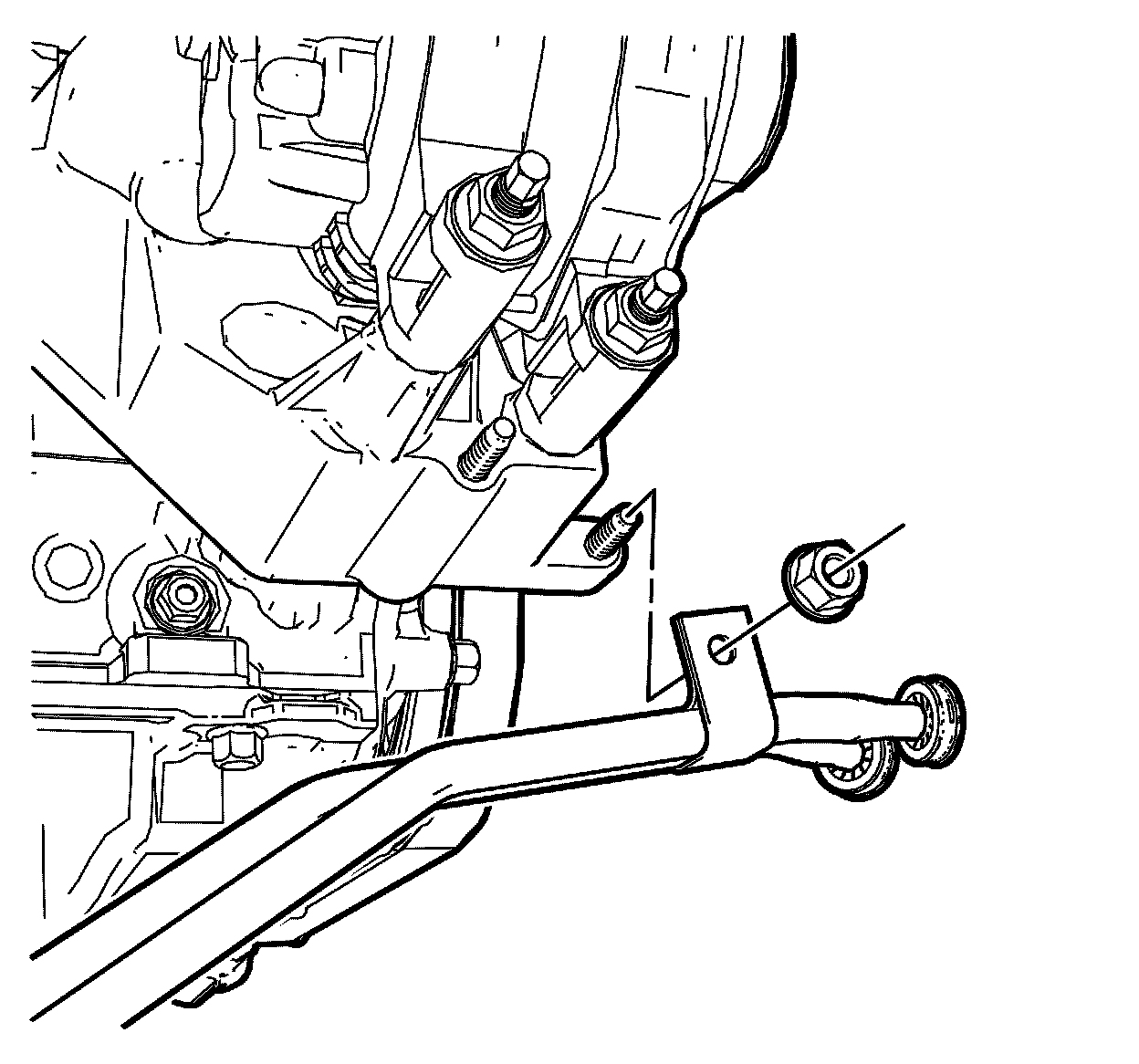 13. Install the bolt securing the transmission fluid cooler pipe retainer to the transmission and tighten to 25 Nm (18 lb ft).