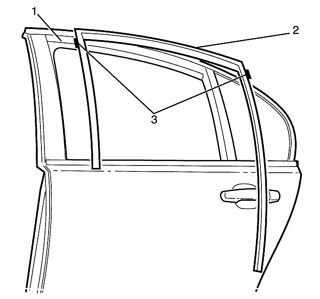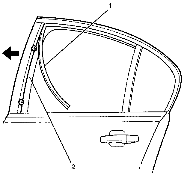 3. Remove the window outer belt sealing strip. Refer to Rear Side Door Window Outer Sealing Strip Replacement (Rear Side Door Window Outer Sealing Strip Replacement).