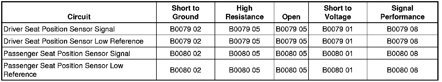 - Passenger Seat Position Sensor Circuit Short to Battery or Open