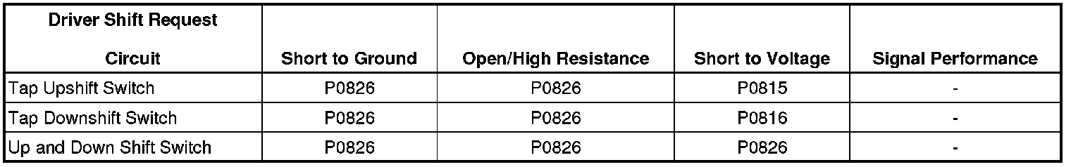 * No Tap up/Tap down DTC P0826.